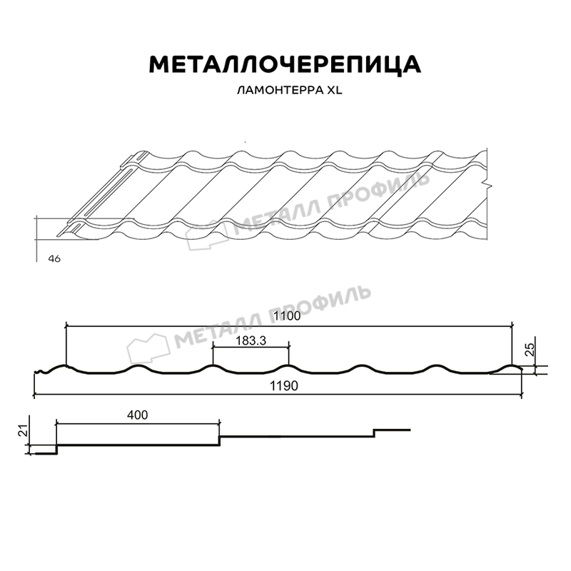 Металлочерепица Металл-Профиль Ламонтерра XL 0,5 PURETAN® RR 35 Синий