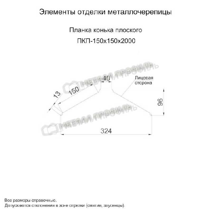 Планка конька плоского 150х150х2000 (VikingMP-01-9005-0.45)