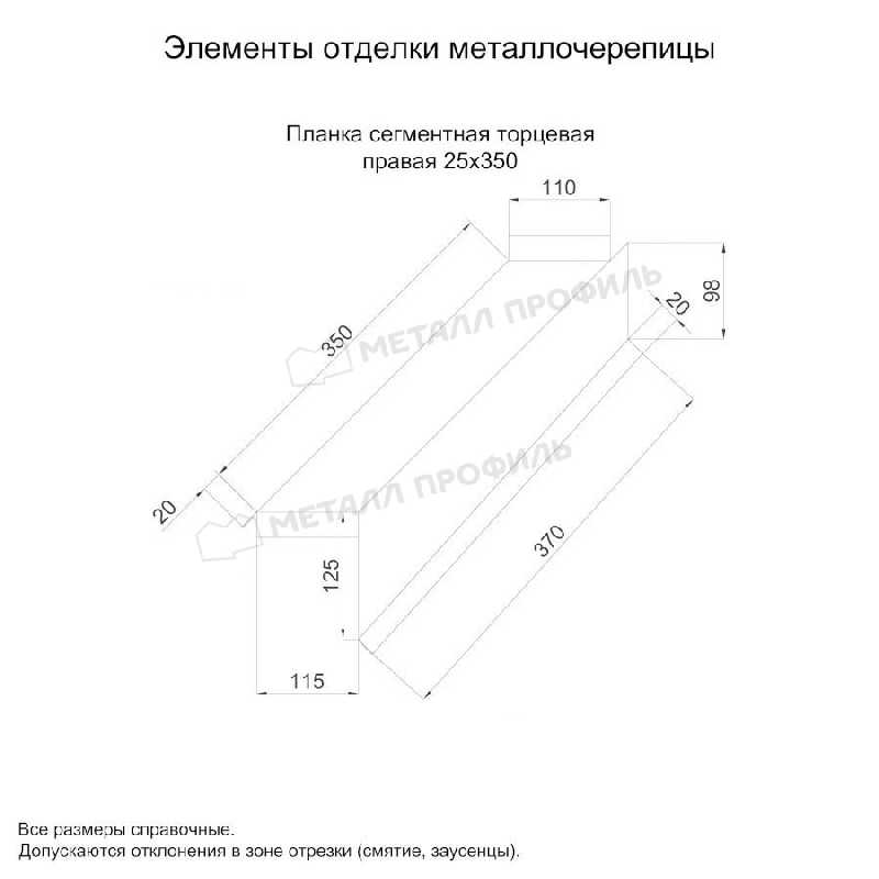 Планка сегментная торцевая правая 350 мм (PURMAN-20-6005-0.5)