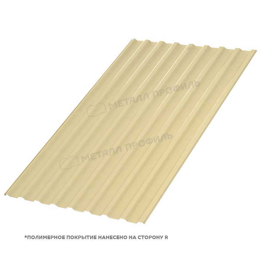 Профлист Металл Профиль МП-20 0,5 Полиэстер RAL 1014 Слоновая кость применяется для обшивки крыш, фасадов зданий, заборов, а также в других строительных и декоративных целях.