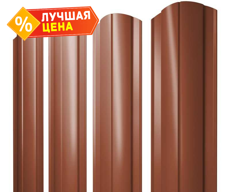 Штакетник Круглый фигурный Grand Line 0,5 Satin RAL8004 Терракота