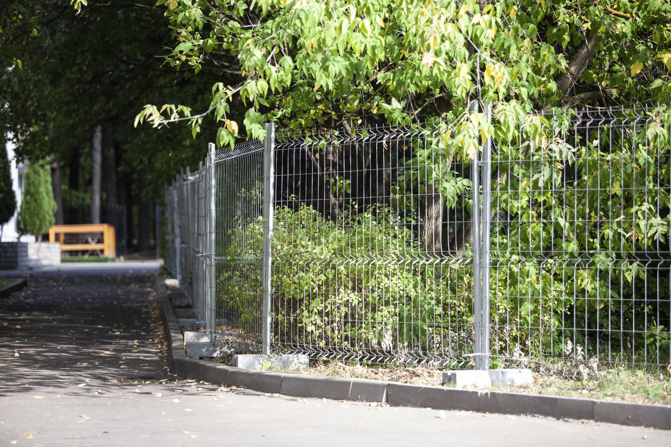 Основание бетонное обеспечивает высокую устойчивость конструкции временного ограждения.
